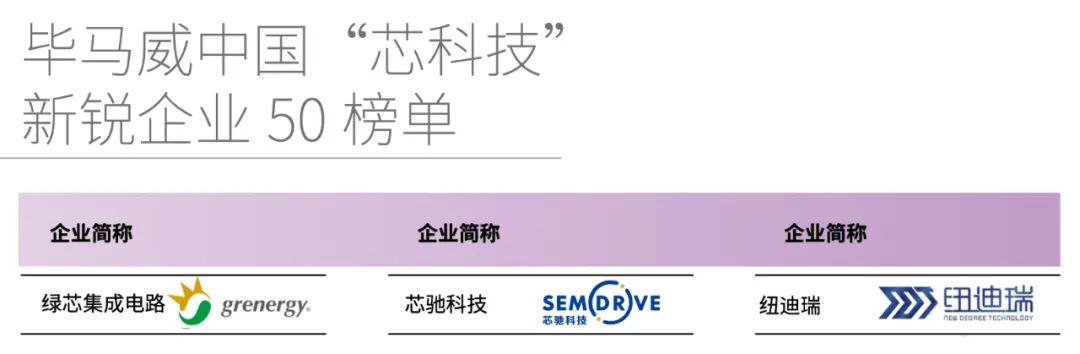 11月7日,畢馬威中國(guó)在第四屆中國(guó)國(guó)際進(jìn)口博覽會(huì)(進(jìn)博會(huì))上重磅發(fā)布了畢馬威中國(guó)第二屆“芯科技”新銳企業(yè)50榜單及《中國(guó)“芯科技”新銳企業(yè)50報(bào)告》,合創(chuàng)資本投資的綠芯集成電路、芯馳科技、紐迪瑞科技實(shí)力登榜。
